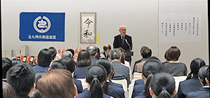 第57回北九州芸術祭書道部門は4月2日(火)~7日(日)までの6日間、桜が満開の北九州市立美術館に於いて開催されました。4月1日の開会式では発表されたばかりの新年号『令和』の揮毫が行われ、会期中エントランスホールに飾られました。今回の出品数は291点、受賞者は82名が表彰されました。