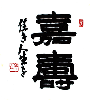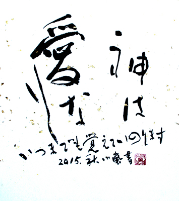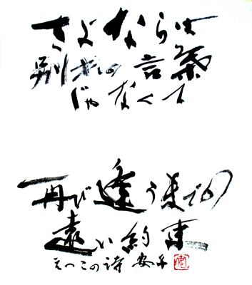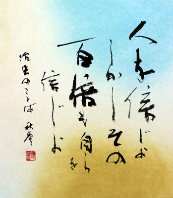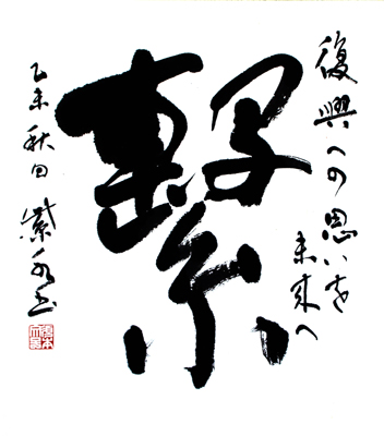 書道連盟理事以上により北九州市書道連盟代表作家展が、平成27年12月9日(水)〜15日(火)の日程でリバーウォーク5階で開催されました。 今回は北九州市の友好都市である釜石市の皆様と、東日本大震災で被災された皆様へ元気を送りたいと願いを込めた66点の応援メッセージ色紙展でした。