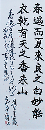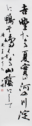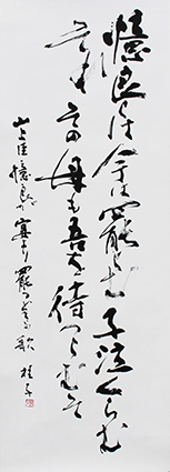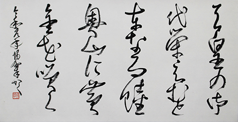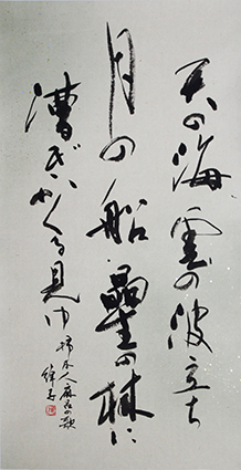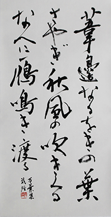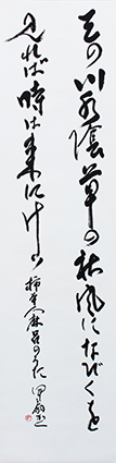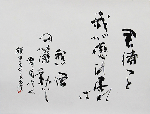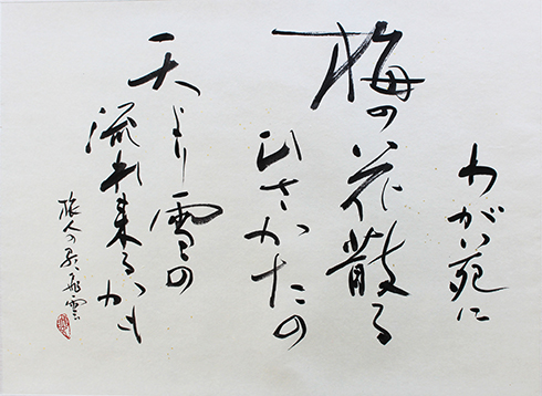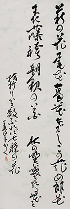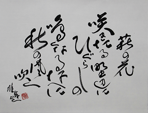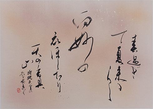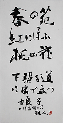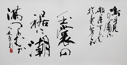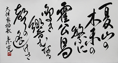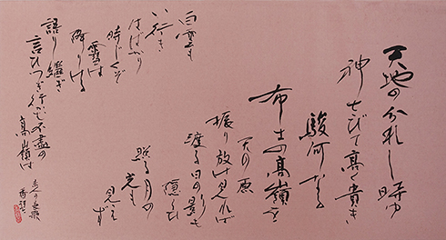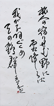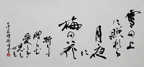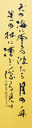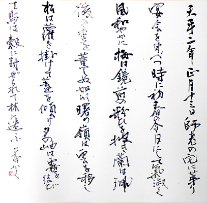 今回は新年号「令和」の典拠となった、万葉集にちなんだ文言などを題材とした「漢字」「かな」「近代詩文書」「大字書」などの作品を展示。